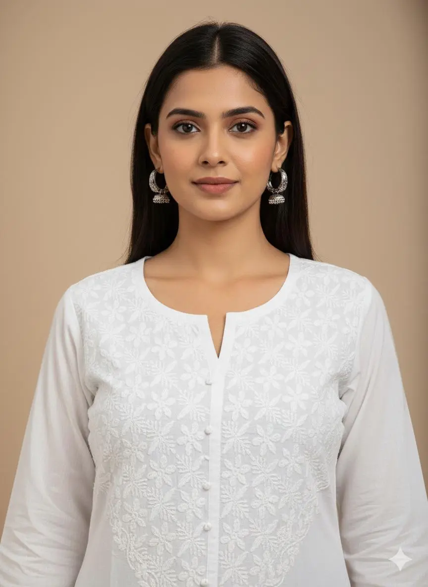 Handcrafted by skilled artisans, this kurti features intricate Chikankari embroidery that reflects the rich heritage of Lucknowi artistry.